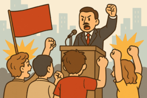 街頭演説やメディアを通じた主張は、感情に強く訴えかける内容であることが多いです。
